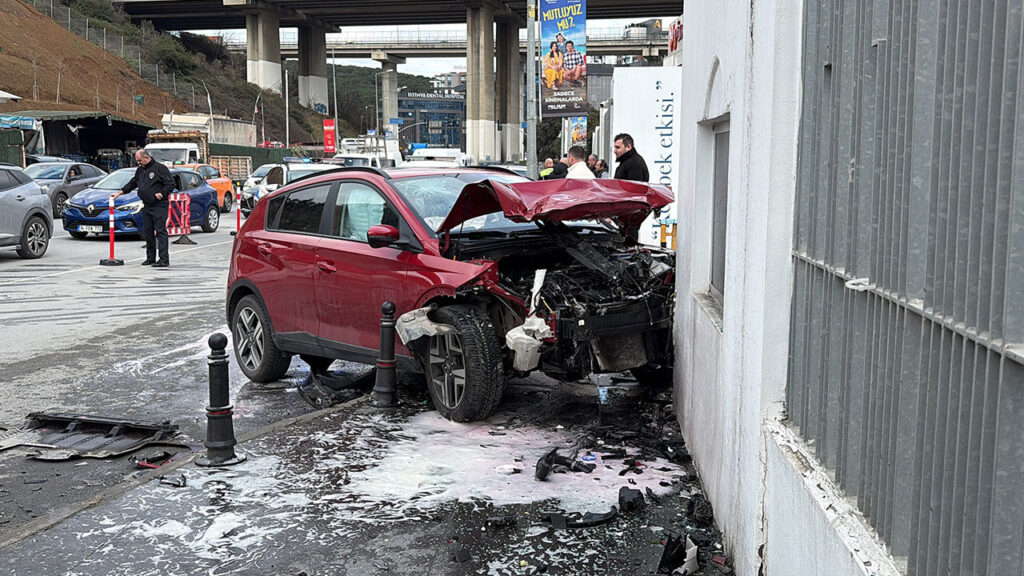 İstanbul Kağıthane’de önünde ilerleyen araca çarpmamak için manevra yapan sürücü, önce yol kenarında park halinde bulunan otomobile vurdu ardından da